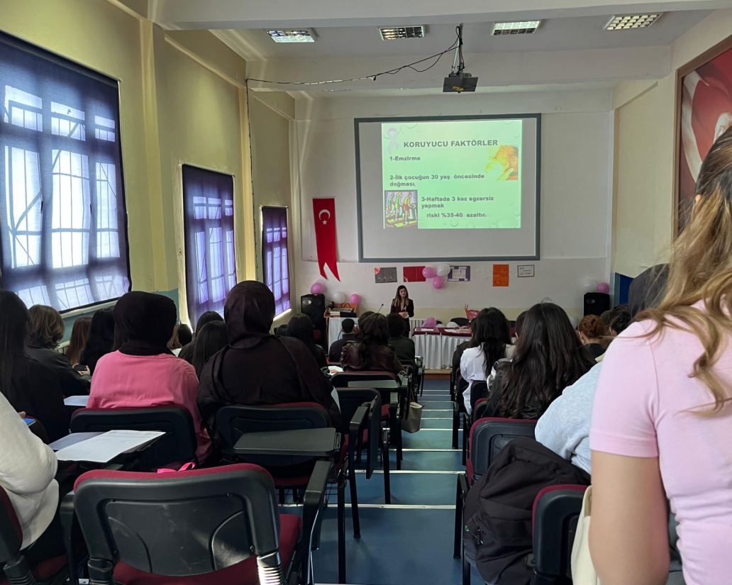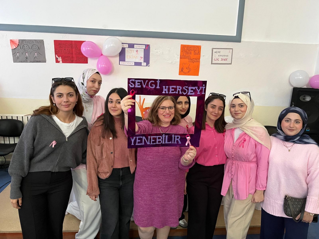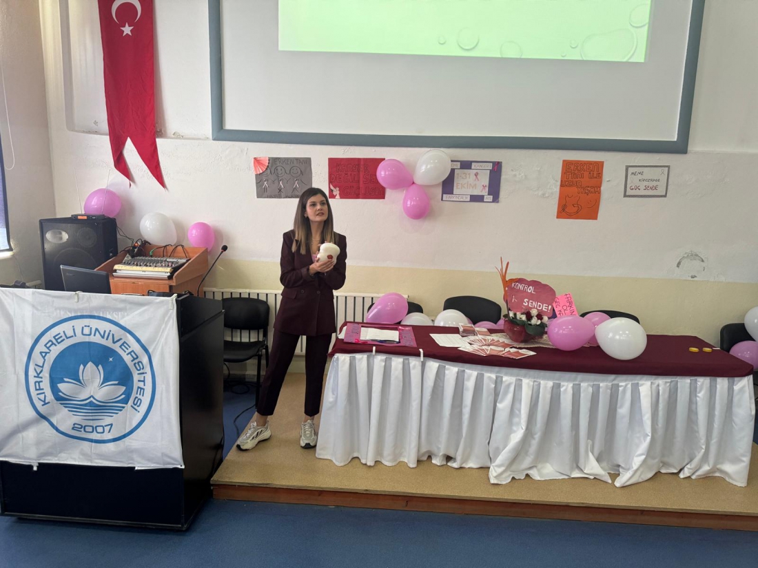 20/10/2025 tarihinde Meme Kanseri Farkındalık Ayı nedeniyle Kırklareli Üniversitesi Topluma Katkı Faaliyetlerine yönelik olarak Meslek Yüksekokulumuzda, Babaeski Devlet Hastanesi ve Babaeski Kirk Sehitler Gençlik Merkezi işbirliğiyle “Pembe Gülüşlerden Ezgiler” programi gerçekleştirildi. Babaeski Devlet Hastanesi Başhekimi Op. Dr. Gülay SARIÇAM, Eğitim Hemşiresi Özlem SOLMAZ ÖNER ve Basin Biriminden Ebe Simge YAĞCI'nın katkıda bulunduğu Kendi Kendine Meme Muayenesi (KKMM)eğitiminde öğrencilerimiz ve okulumuz personeli bilgilendirildi. Meme Kanserine dikkat cekmek ve farkındalık yaratmak adına Babaeski Kırk Şehitler Gençlik Merkezi Müdürü Özmen AYDIN, Müzik Öğretmeni Emrah ÖZCAN'ın ve Gençlik Lideri Uğur DELİBAŞ'ın öğrencileri okulumuzda mini bir konser verdi. Topluma katki faaliyetimize katkıda bulunan kurum ve kurum çalışanlarına teşekkür ederiz.