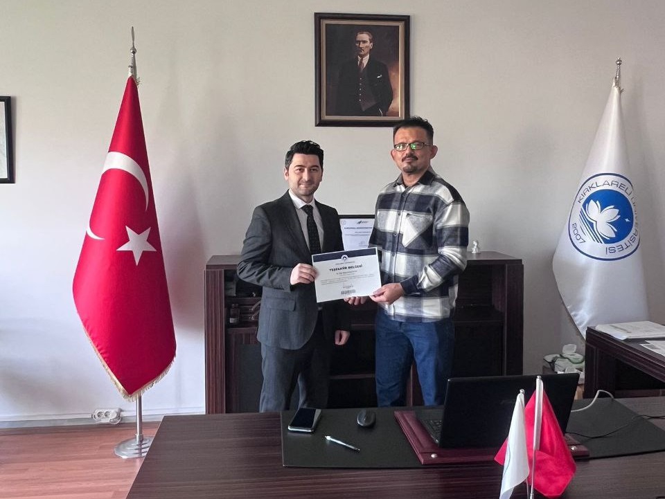 Babaeski Meslek Yüksekokulumuz Müdürü Dr. Öğr. Üyesi Kemal TAYSI, 2025 yılı içerisinde en fazla akademik yayın gerçekleştiren öğretim elemanımız Dr. Öğr. Üyesi Ahmet AYDIN’a tebrik belgesi takdim ederek başarılı akademik çalışmalarından dolayı teşekkürlerini iletti. Bu takdir, kurumumuzda akademik üretkenliğin teşvik edilmesi ve bilimsel faaliyetlerin desteklenmesi açısından önem taşımaktadır.